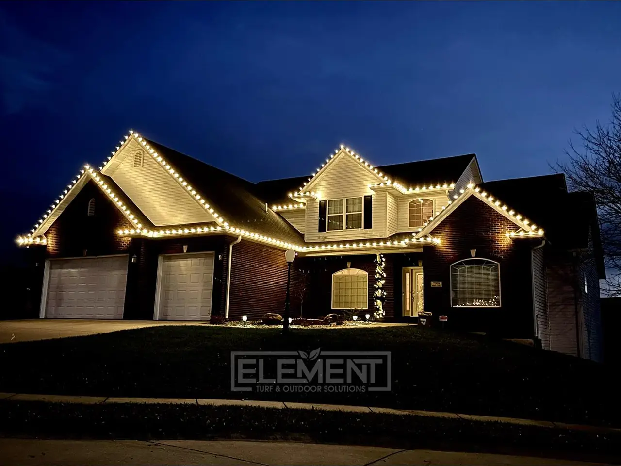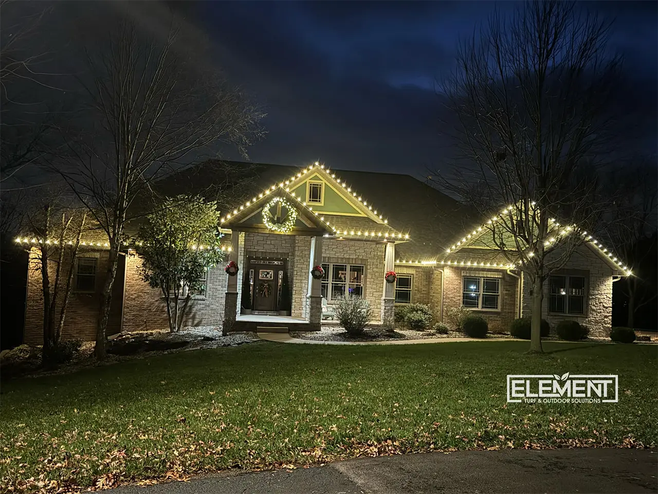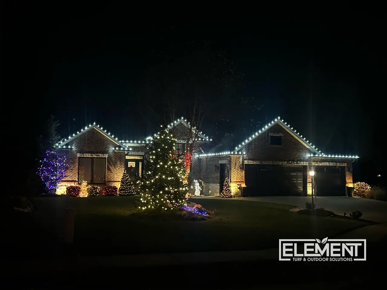 - Maintenance throughout the season: While our lights are expected to shine bright all season long, life happens! Just give us a call at any time throughout the season, and we can repair any broken or malfunctioning lights to get your display up and running flawlessly again. At Element Turf & Outdoor Solutions, LLC, we want you to have a worry-free holiday, so you can rely on us to address any issues that will arise.